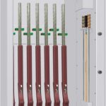 – výškovo nastaviteľné delené opierky zbraní a spodná podložka pod pažby v prevedení DTD s filcovou výstelkou